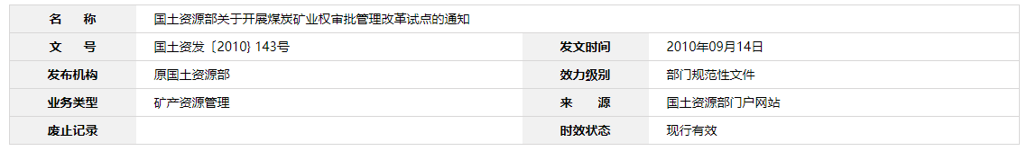 | 國土資源部關(guān)于開展煤炭礦業(yè)權(quán)審批管理改革試點的通知 |