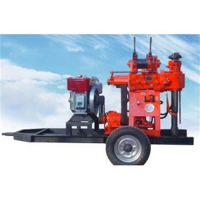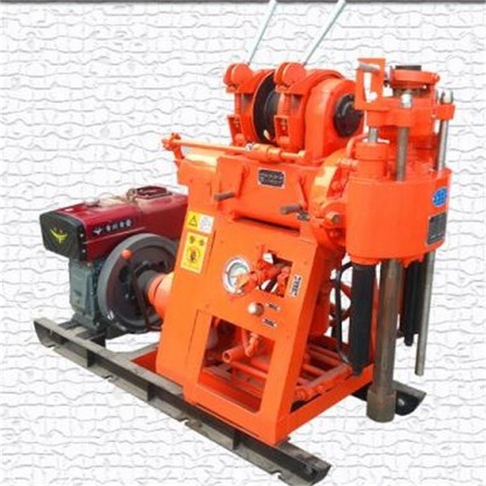 勘探以及打孔等鉆進工程;2.可根據地層的不同選用合金、鋼砂及鋼粒等鉆頭進行鉆進;3.可鉆2-9級的砂質粘土及基巖層等。二、主要特點1.具有油壓自動給進機構、鉆進效率高。2.采用上球卡夾持機構代替卡盤,可實行不停機倒桿。3.手柄集中、操作方便、安全可靠。4.結構緊湊,鉆機、水泵及柴油機都安裝在同一個底架上,占用場地面積小。5.重量輕、分解性強,便于,適合于平原和山區工作。鉆機參數:型號: XY-100鉆孔深度: 100 m_開孔直徑: 219 mm終孔直徑: 73 mm液壓泵壓力: 1.2 Mpa液壓泵轉速: 1500 r/min立軸轉速: 142、285、570 r/min立軸行程: 450 mm提升能力: 9.8 KN鋼絲繩直徑: 9.3 mm排量: 100 L/min動力: S110柴油機、10KW電機