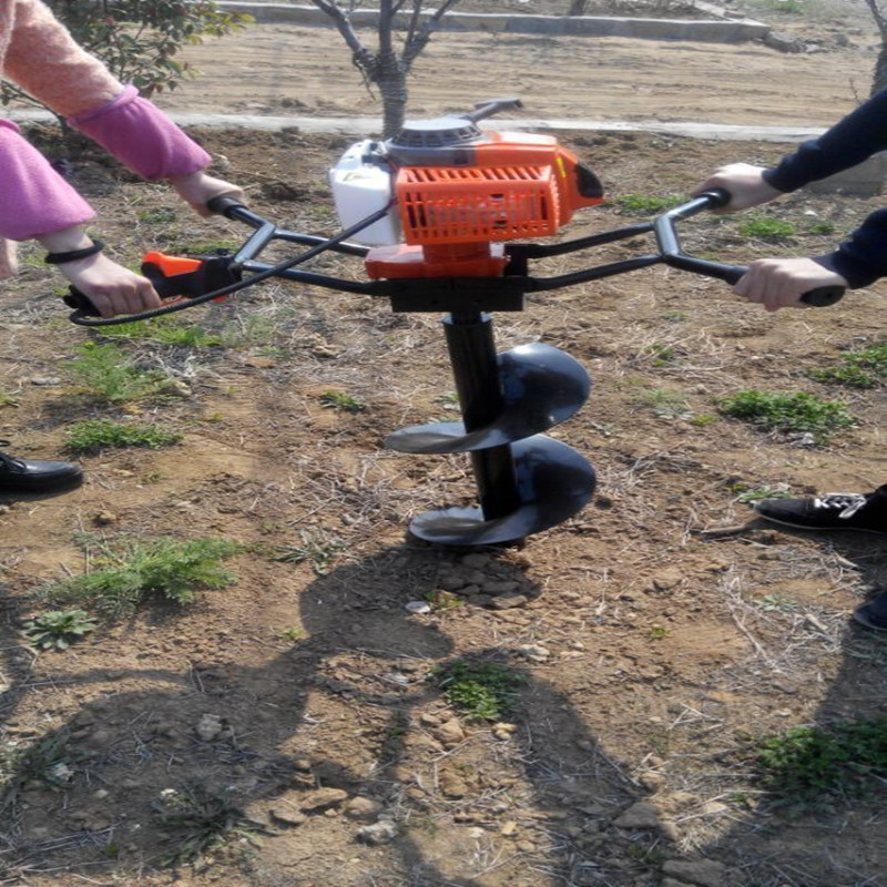 本機器由小型通用汽油機,超越離合器,高減速比傳動箱及特殊設計的鉆具組成適合于<20度以下的坡地、沙地、硬質土地的植樹造林或果樹種植,道路兩側綠化植樹等。苗木種植挖穴,畜牧圍欄埋樁挖穴;葡萄胡椒種植埋樁挖穴;果樹、林木施肥挖穴。鉆頭直徑(mm):80 100 150 200 250 300 400mm