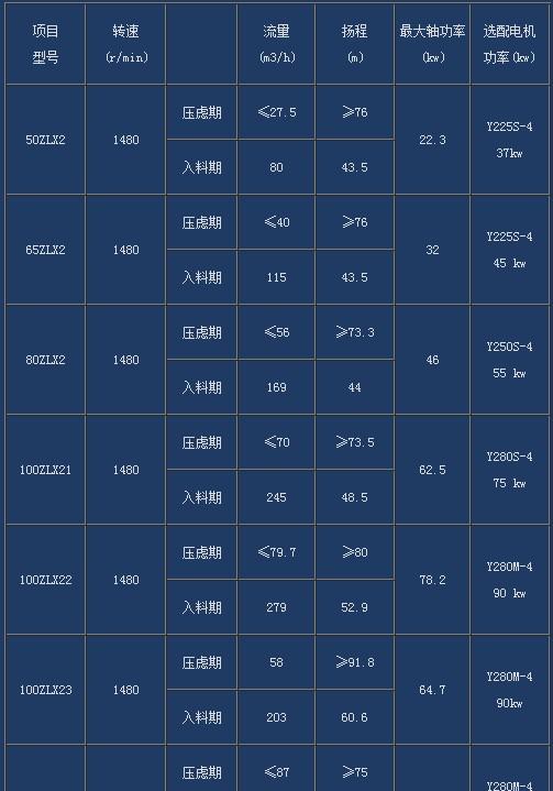 零泄漏·ZLX2型壓濾機(jī)專(zhuān)用渣漿泵的選型技術(shù)參數(shù)