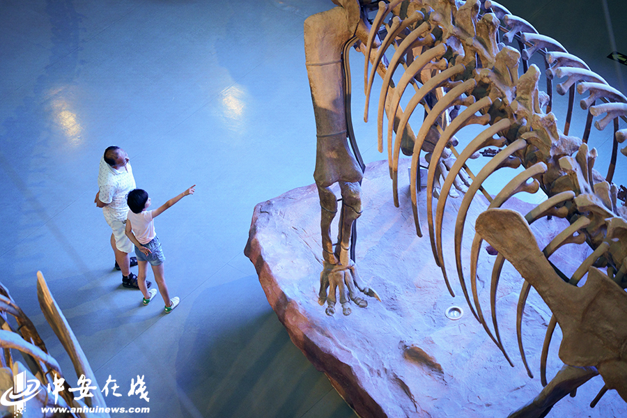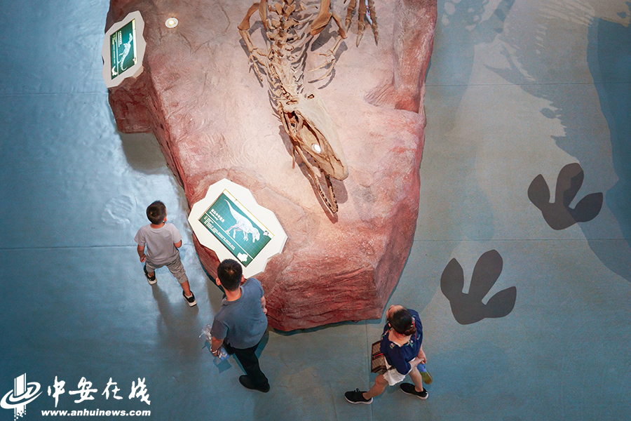 中安在線、中安新聞客戶端訊 三伏天,室外活動(dòng)需頂著酷暑。逛博物館不失為一種降溫避暑的好選擇。對(duì)于熱愛(ài)自然科學(xué)的孩子們來(lái)說(shuō),暑假的來(lái)臨意味著更多的課外時(shí)間,在博物館的展廳內(nèi)觀賞恐龍骨架、穿越遠(yuǎn)古時(shí)空成為度夏的理想方式。8月3日,在安徽省地質(zhì)博物館里,一群熱愛(ài)生物和地質(zhì)科學(xué)的孩子或跟隨家長(zhǎng)、或結(jié)伴而行,穿梭在博物館涼爽寬敞的大廳內(nèi),在知識(shí)的海洋中遨游。(徽鏡映像工作室 記者 許夢(mèng)宇)