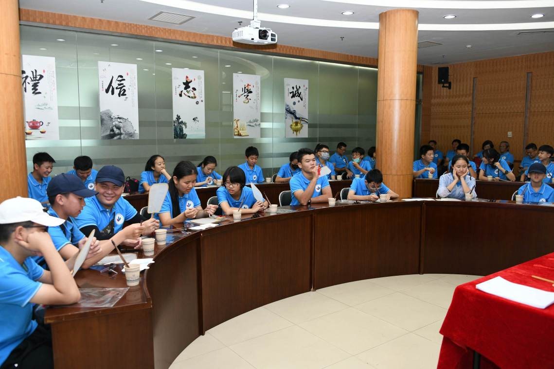 啟動儀式上,兩岸中小學生分成10組,現場設計本小組的團隊口號,繪制logo旗幟,并集體亮相展示。活動現場每名隊員積極開動腦筋,建言獻策,氣氛活躍,熱鬧非凡。