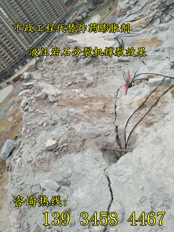 5、確定性:與大多數傳統的拆除方法和設備不同,液壓劈裂機可以預先的確定分裂方向,可以按所需分裂形狀以及需要取出部分的尺寸做到拆除分裂。