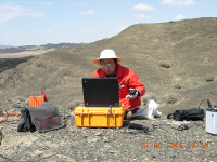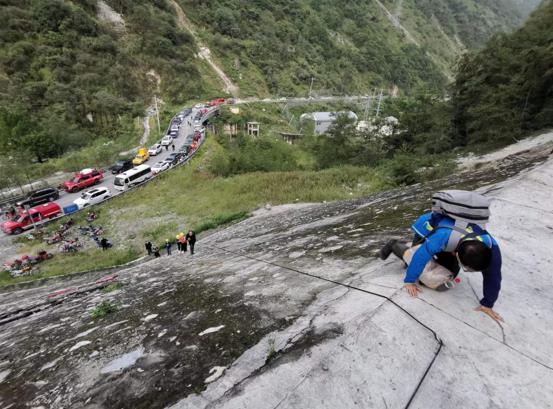 活動構造室梁明劍、形變室饒太國、羅凌三位同志于兩點零八分即從青高所出發,奔赴瀘定地震現場,開展應急工作。梁明劍為現場指揮部提供地震地質支撐;饒太國、羅凌趕赴離震中最近的GNSS站點,獲取因全鎮通訊故障導致無法實時傳回的GNSS高頻數據。在距離磨西鎮還有幾公里處,因道路塌方車輛無法通行,三位同志只能借助梯子、繩索等工具在沒有路的陡坡上攀爬前進。到達震中后,他們迅速開展巡臺收數工作,獲取了珍貴的第一手數據資料。