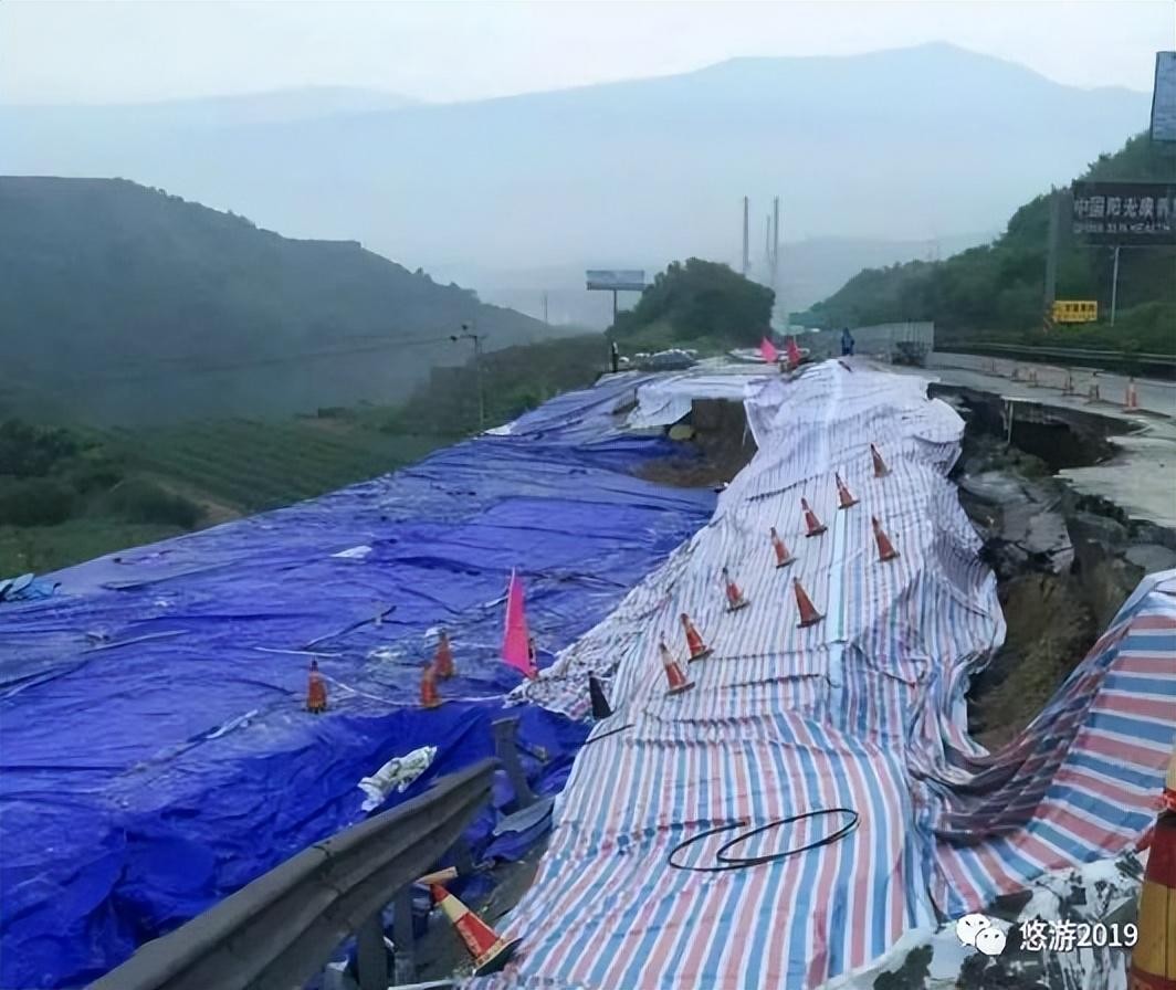 2、某既有高速公路加寬,填方約7~10萬(wàn)方。由于下伏地層這富水半成巖地層,造成填方基本到位后形成了大規(guī)模下錯(cuò),直接導(dǎo)致前部約80m范圍內(nèi)的富水菜地隆起達(dá)1~2m以上,滑坡后緣位于高速公路填方側(cè)中部,下錯(cuò)約3.0m,且滑坡處于不斷的加速滑移過(guò)程中,直接威脅滑坡前方高約300m陡坡下部的國(guó)道和民居安全,以及不斷牽引可能影響后部高速公路的安全。