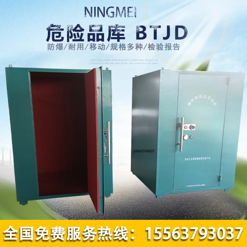 爆炸危險品存放柜依照其功能作用于火工品等危險物品的存儲,其外層為6-8mm淬火加工防爆鋼板,內層附由10mm絕緣木板以及1mm防靜電阻燃氈,同時根據相關部門的防盜要求,成功實現雙鎖聯動功能。外觀大方并經久耐用,門框為加厚鋼質內折門框,門面為高質量表面處理,經過了精心的磷化處理,使其更具耐腐蝕性,進口噴涂流水線,高壓靜電粉體噴涂,高溫烘烤使產品色澤光亮,附著力強;超厚門扇,雙重防撬扣邊,防撬、防盜。