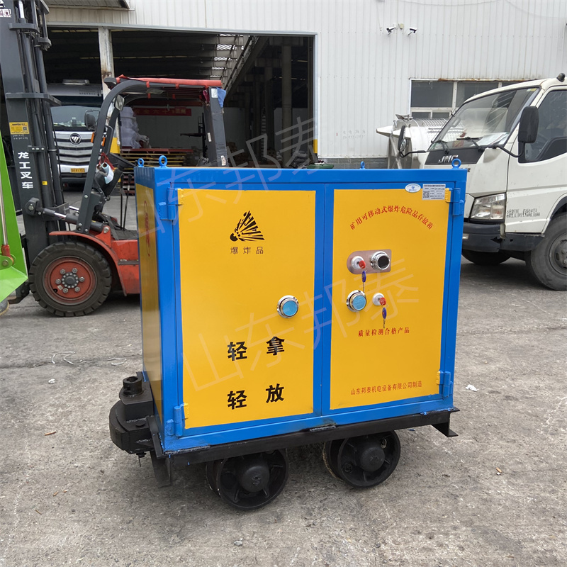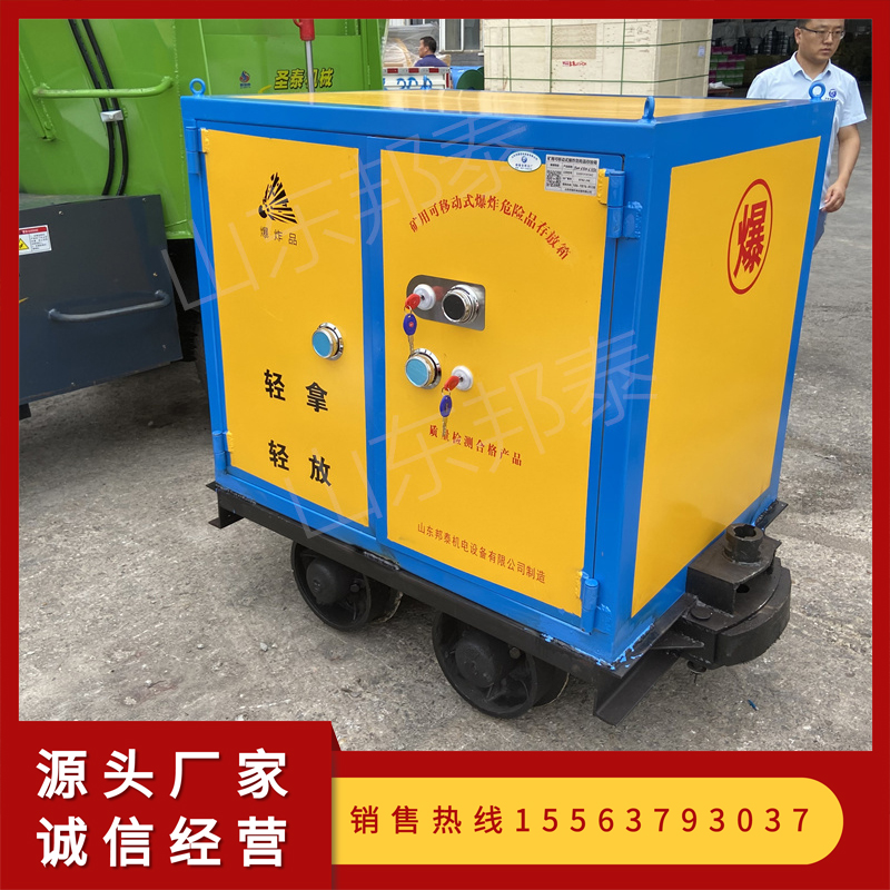 在運輸這些火工品的過程中,會存在很多的危險,其中有一些需要重點注意的地方。地面上采用民爆運輸車輛運輸爆炸物品的時候,應當按照地面的民用爆炸物品運輸管理規定,那么井下運輸爆炸物品,也是需要按照相應的規定,來在井下運輸爆炸物品的。首先需要的就是具體的存放爆炸危險品的運輸工具-礦用可移動式炸藥運輸車