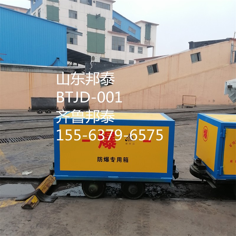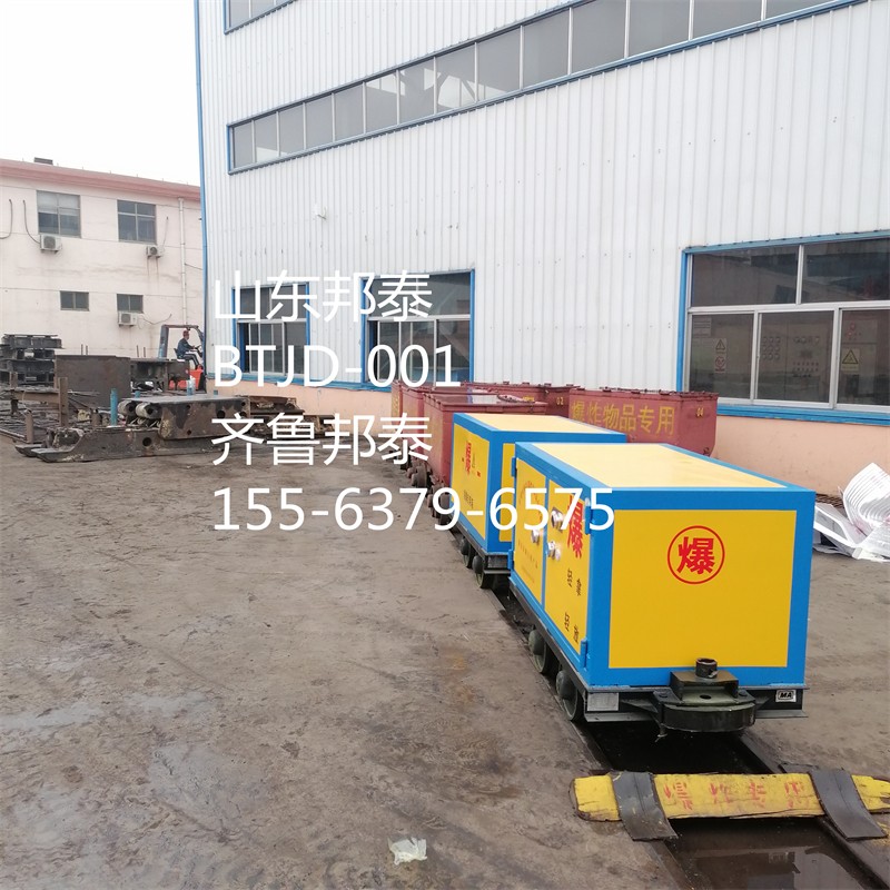 軌道炸藥車(chē)外部為6-8mm厚防爆鋼板,中間隔層為10mm厚絕緣木板,內(nèi)部四周和底部鋪有2.0mm厚防靜電氈,開(kāi)門(mén)方式為單側(cè)雙開(kāi)門(mén),配有雙密碼鎖具。礦車(chē)軌距為600mm、762mm、900mm,滿(mǎn)足大部分礦山井上井下軌道運(yùn)輸爆破器材的要求,整車(chē)集儲(chǔ)存。運(yùn)輸于一體,具有防爆、防靜電、防震、防盜、防火等特點(diǎn)。礦車(chē)兩端配有牽引裝置,由三環(huán)鏈、插銷(xiāo)和插銷(xiāo)座組成,可以將多個(gè)運(yùn)輸車(chē)連接成車(chē)組并傳遞牽引力。