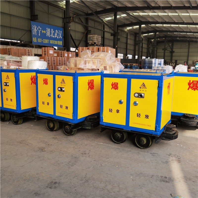 BTJD-001型礦用有軌爆破器材運輸車滿足于各類煤礦和非煤礦山的爆破器材運輸作業,可根據礦山常用窄軌(通常為600mm、762mm、900mm)來定制適合的軌距和存放量,區別于其他類型的爆破器材運輸車,它是專門為礦井使用的,所以,需要具有礦山安全監督部門檢查的證件,煤礦帶有《煤安證》非煤礦山帶有《礦安證》,以及針對爆破器材存儲檢查所需要具備的《公安檢測報告》,報告產品名稱為“礦用可移動式爆炸危險品存放箱”,充分體現出“礦用”和“可移動式”,材質需符合防爆和防靜電要求,所以也應具有這兩項的檢查報告。