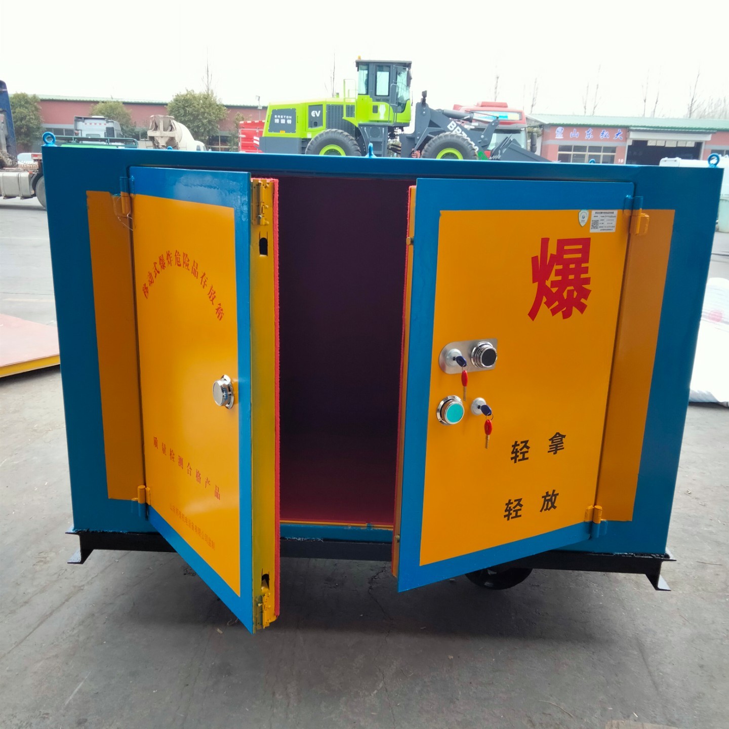 按照存放量的多少,分為存放箱,存放柜,存放庫,下面為大家介紹一款存放柜。存放柜材質(zhì)使用的是6-8mm厚的防爆鋼板,內(nèi)層是10mm厚防靜電木板,最里層是約2mm厚的防靜電阻燃?xì)郑i具配有一個(gè)機(jī)械密碼鎖和兩把十字鎖,鑰匙由兩人分開保管,四角可安裝吊環(huán),便于裝卸。