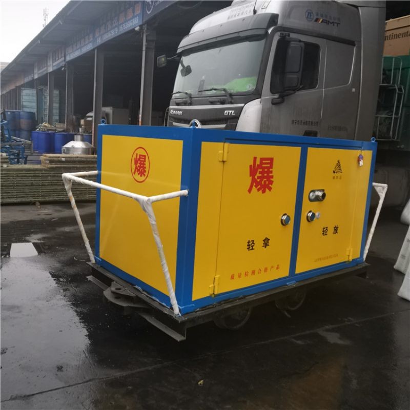 第二部分為專用礦車,礦車軌距(600mm/762mm/900mm),滿足大部分礦山井上井下軌道運輸爆破器材的要求,整車集儲存,運輸于一體的功能,具有防爆、防震、防盜、防火、防靜電等特點。