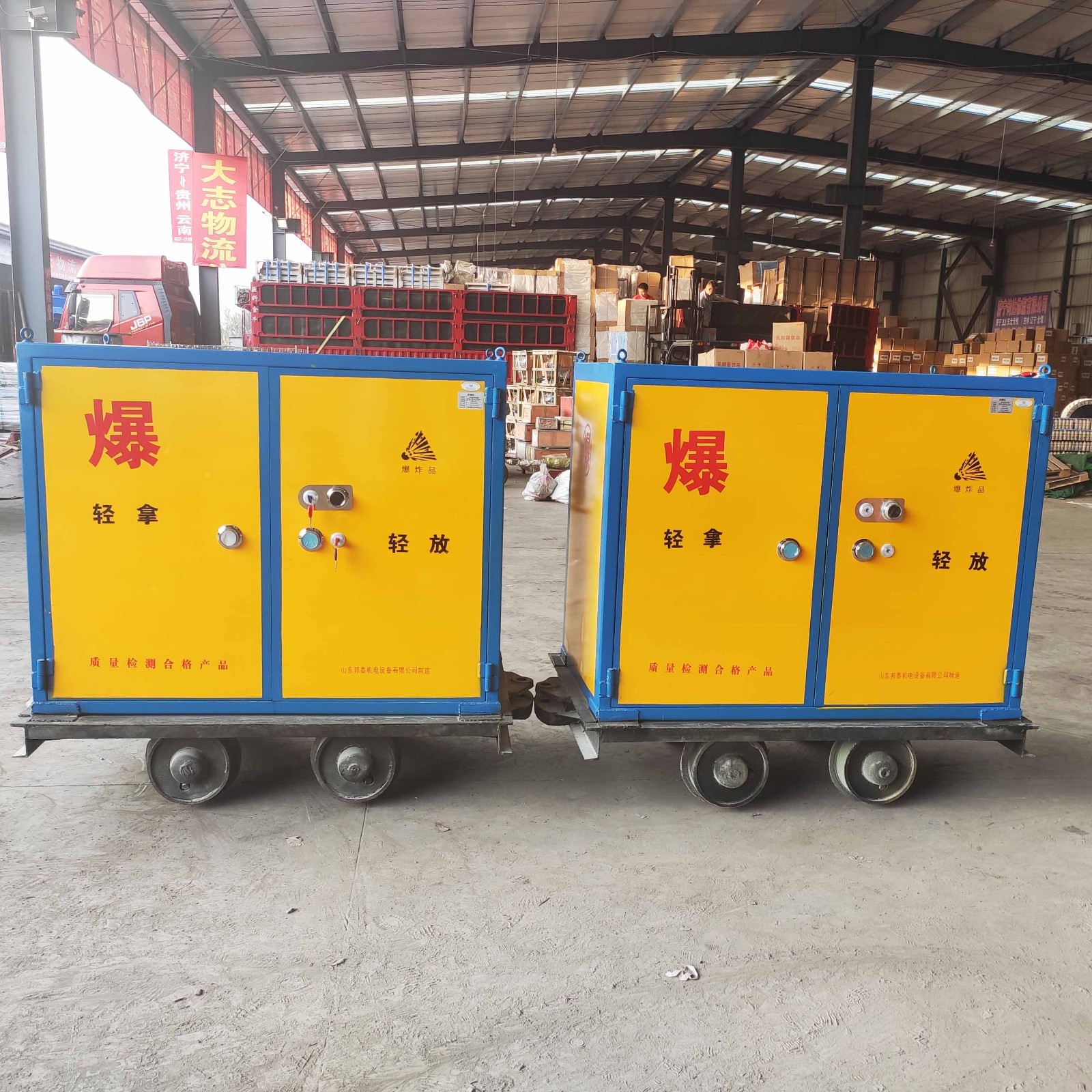 “礦車(chē)軌道炸藥箱”是現(xiàn)代礦山井下開(kāi)采施工不可缺少的運(yùn)輸工具,該運(yùn)輸車(chē)?yán)密壍缹⒄ㄋ幓蛘呃坠艿然鸸て愤\(yùn)輸?shù)骄率┕さ攸c(diǎn),車(chē)輛結(jié)構(gòu)設(shè)計(jì)合理,尺寸可靈活定制,目前取得了《公安檢測(cè)報(bào)告》《防爆檢測(cè)報(bào)告》《防靜電檢測(cè)報(bào)告》《礦安證》等資質(zhì),目前被廣泛應(yīng)用于全國(guó)多家礦企。