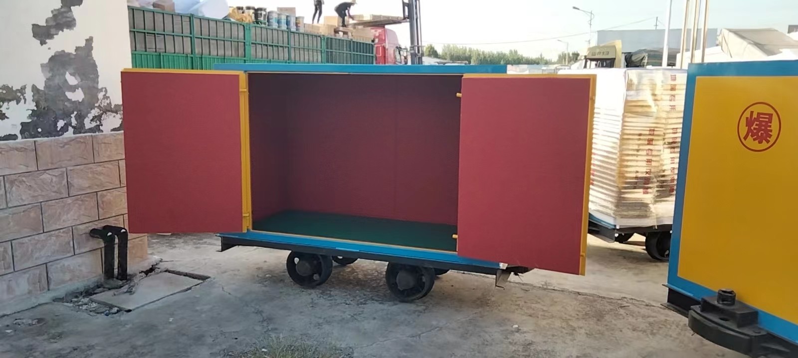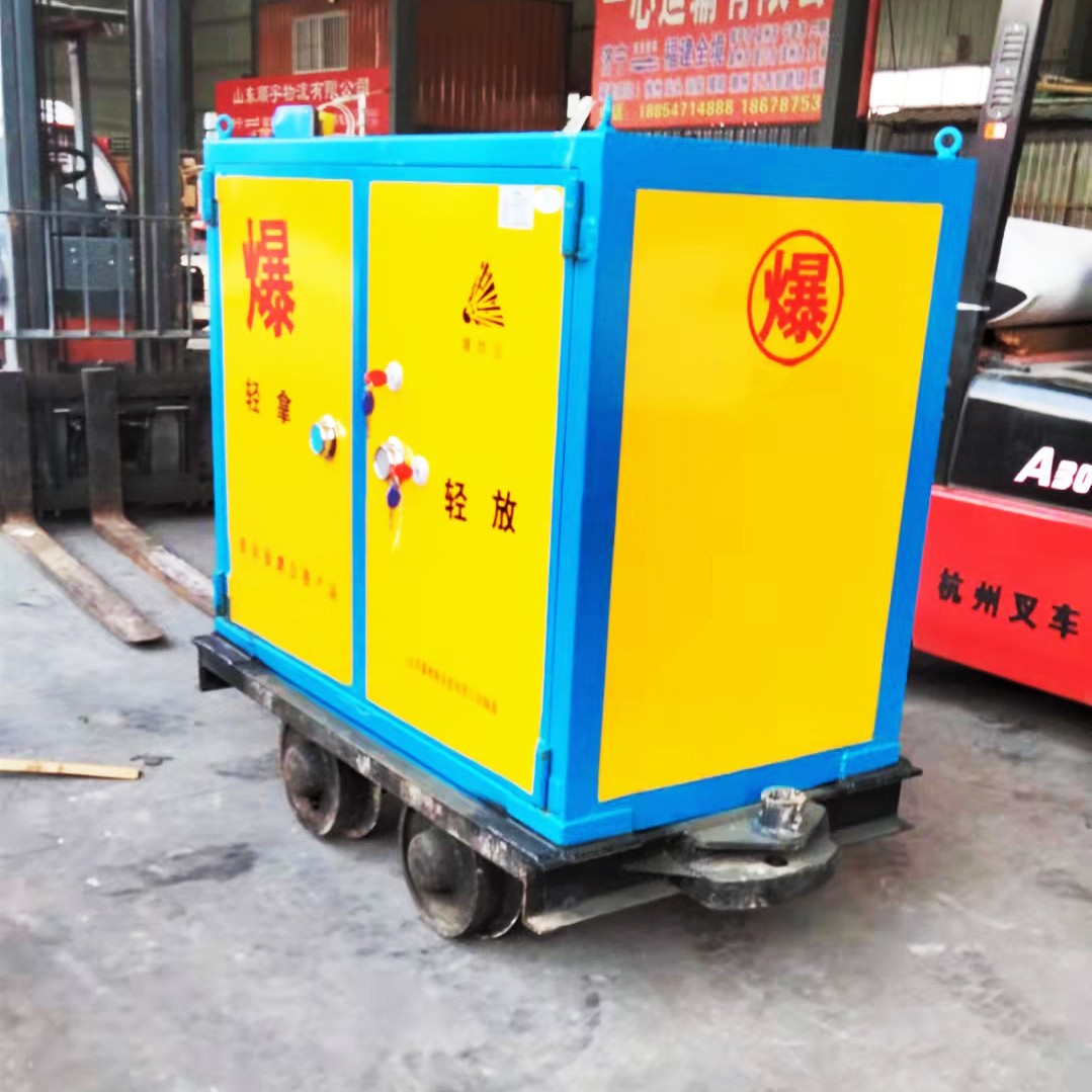運輸廂是礦用爆破器材運輸車的一個重要組成部分。這種炸藥運輸廂外層采用優質鋼板焊接成型,內部做防靜電處理,由一層絕緣木板和防靜電阻燃氈墊整鋪貼合內部木質襯板,同時也具有一定的防震作用,這款在礦山現場具有重要的作用。它是為井下大量運輸炸藥而設計的一移動式儲存器。由于炸藥對運輸車輛所需安全要求很高,因此必須采用專業的有軌道炸藥車進行運輸。