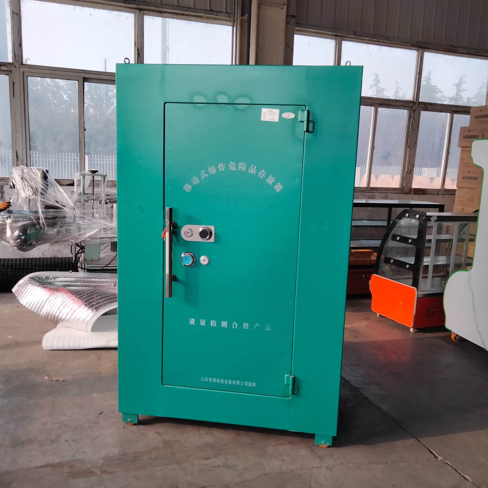 移動式爆炸物品存放柜具有專業檢測的資質,帶有“移動式爆炸危險品存放箱”的公安檢測報告和防靜電墊檢測報告以及防爆檢測合格證。