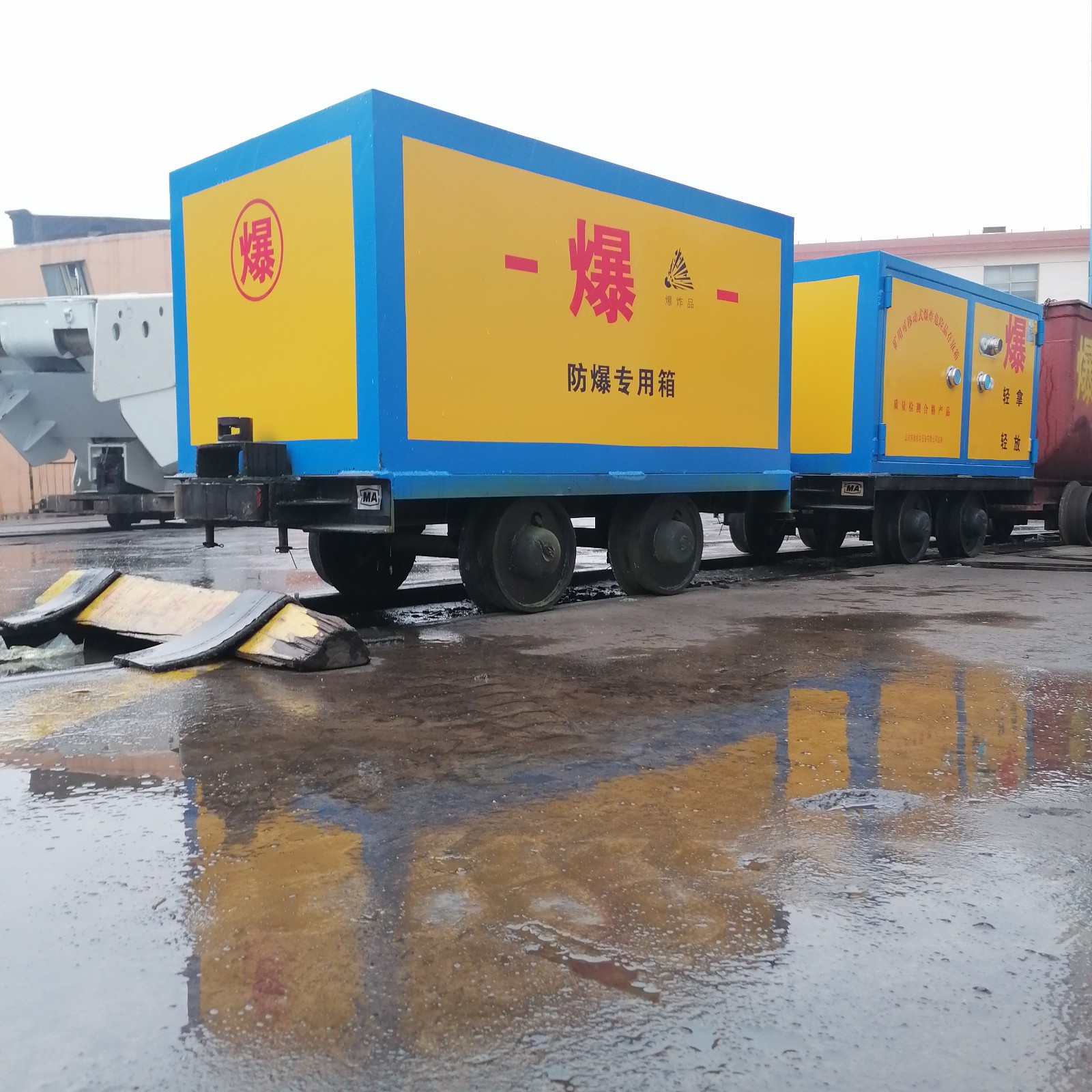 井下有軌火工品車(chē)是礦車(chē)企業(yè)用于運(yùn)輸火工品至地下爆破施工的一款運(yùn)輸工具,針對(duì)井下既有的軌道情況,可按照不同礦山軌距定制運(yùn)輸車(chē),礦山窄軌一般可分為600/762/900mm幾種軌距,除了符合礦山的軌距要求,還有其他各種因素影響著車(chē)輛的構(gòu)成,比如運(yùn)輸量,井下的運(yùn)輸條件可影響到車(chē)輛的大小,是斜井或者是豎井可影響到配備大小碰頭;那么,這款運(yùn)輸是如何保障火工品的存放安全呢?