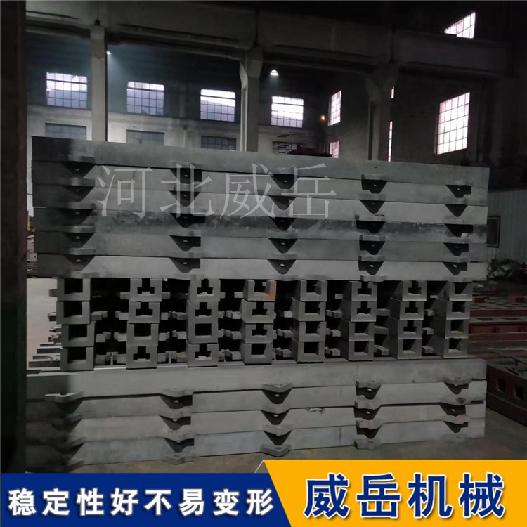 材料檢驗:地平鐵是保障安裝質量的關鍵。選擇強度鑄鐵材質,如HT250或HT300,其抗拉強度分別可達250MPa和300MPa以上,確保在長期重載下不變形。到貨后,使用硬度計抽檢地平鐵表面硬度,需達到HB170-240。同時,檢查外觀是否有砂眼、氣孔、裂紋等問題,通過磁粉探傷或探傷儀對關鍵部位進行探傷檢測,確保材料內部質量可靠。