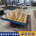 多規格零件兼容:T型槽平臺表面的標準化T型槽(槽寬18-40mm,槽距150-300mm),可通過更換T型螺栓、調整夾具位置,適配不同尺寸、形狀的零件。例如同一臺銑床搭配2000×3000mmT型槽平臺,既能加工直徑50mm的軸類零件,也能加工400×600mm的方形工裝板,無需為每種零件定制專用工作臺,工裝成本降低60%;