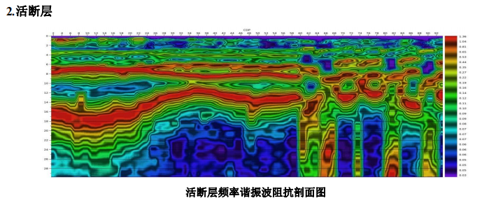 北京郊區(qū)某農(nóng)村發(fā)現(xiàn)地面開(kāi)裂、民房墻面裂開(kāi)的現(xiàn)象。應(yīng)用頻率諧振技術(shù),發(fā)現(xiàn)活斷層的存在導(dǎo)致了以上現(xiàn)象,該成像剖面清晰的揭示了活斷層各個(gè)小斷塊的發(fā)育狀況。