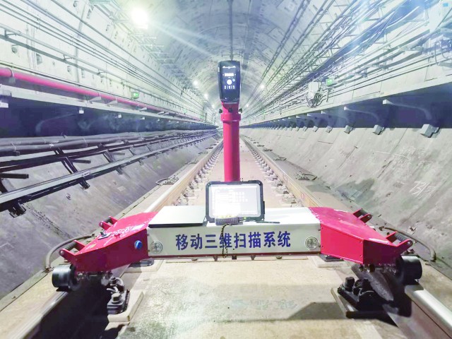 移動式三維激光掃描測量系統日前成功應用于天津地鐵多項軌道檢測與監測項目,相當于給軌道交通結構做完整CT掃描,實現了對地鐵隧道快速、高精度、全斷面安全檢測與監測,從而及早發現地鐵隧道受交通荷載、地質條件變化等因素影響發生變形、裂縫、滲漏水的風險隱患。