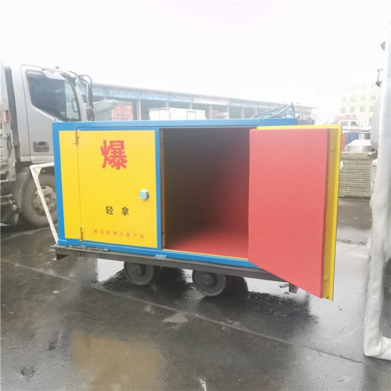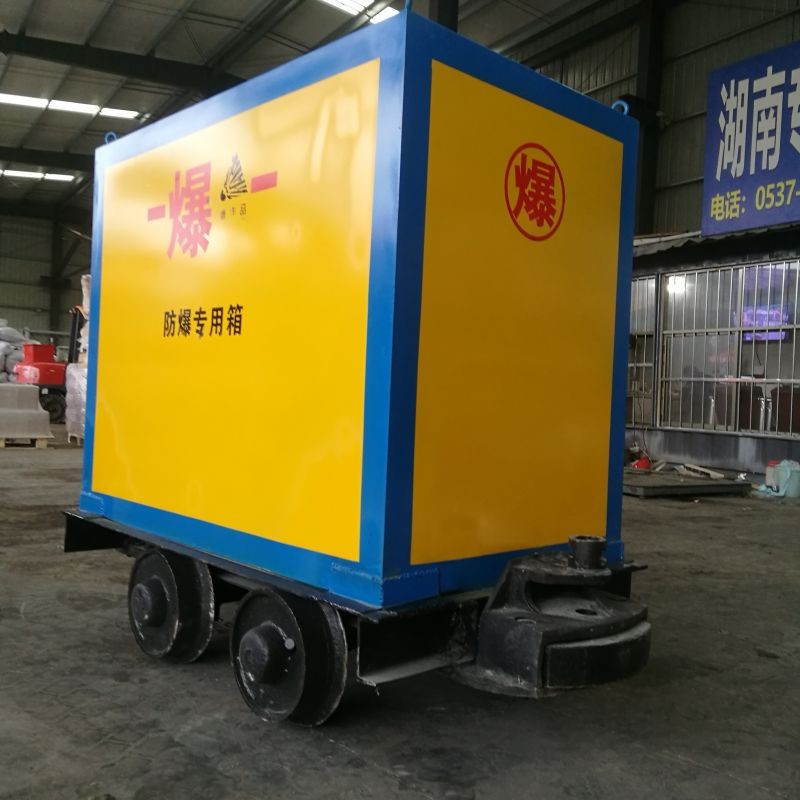 “BTJD-001有軌爆破器材運輸車”,也叫礦用爆炸物品運輸車、礦山軌道牽引炸藥車、井下電雷管有軌運輸車,移動式火工品運輸車。可在600mm、762mm、900mm軌距的礦山軌道上進行行駛運輸,主要運輸的是井下爆破作業使用的電雷管、炸藥等爆破器材。是一款符合礦山安全檢查標準的新型運輸礦車。