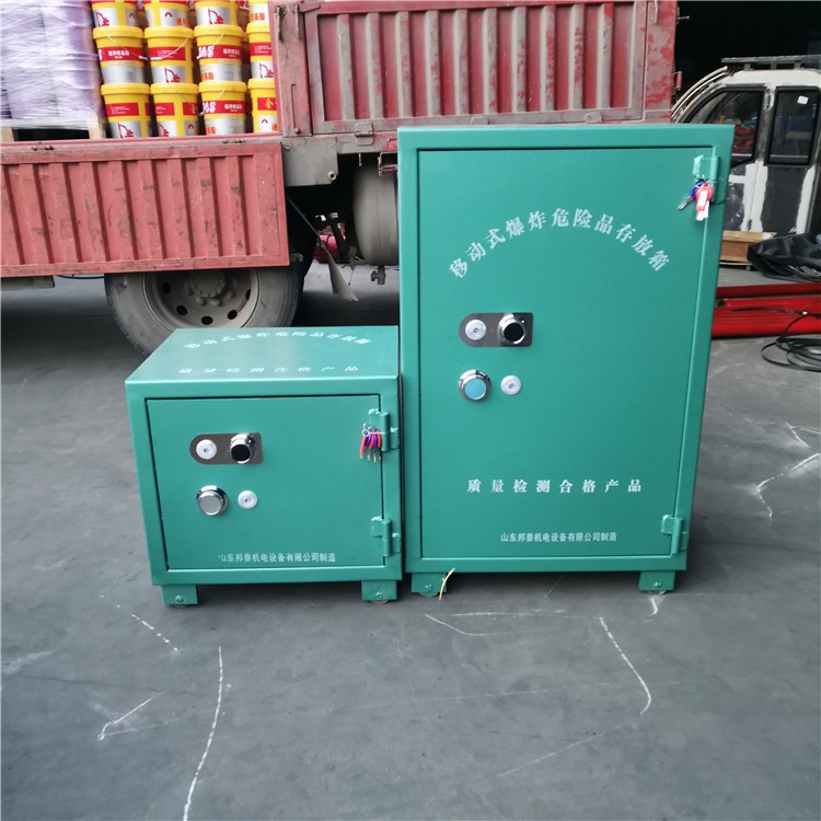 爆炸危險品存放柜依照其功能用作雷管、炸藥、火藥等系列危險物品的存儲,其外形為6-8mm防爆鋼板,內層附有10mm絕緣木板及2mm防靜電阻燃墊,同時根據國標防盜要求成功實現雙鎖聯動聯動功能。外觀大方并經久耐用,門框為加厚鋼質內折門框,門面為高質量表面處理的門面,經過了精心的磷化處理使其更具耐腐性,進口噴涂流水線,高壓靜電粉體噴涂,高溫烘烤使產品色澤光亮,附著力強,超厚門扇,雙重防撬扣邊,全方位防撬,防盜。