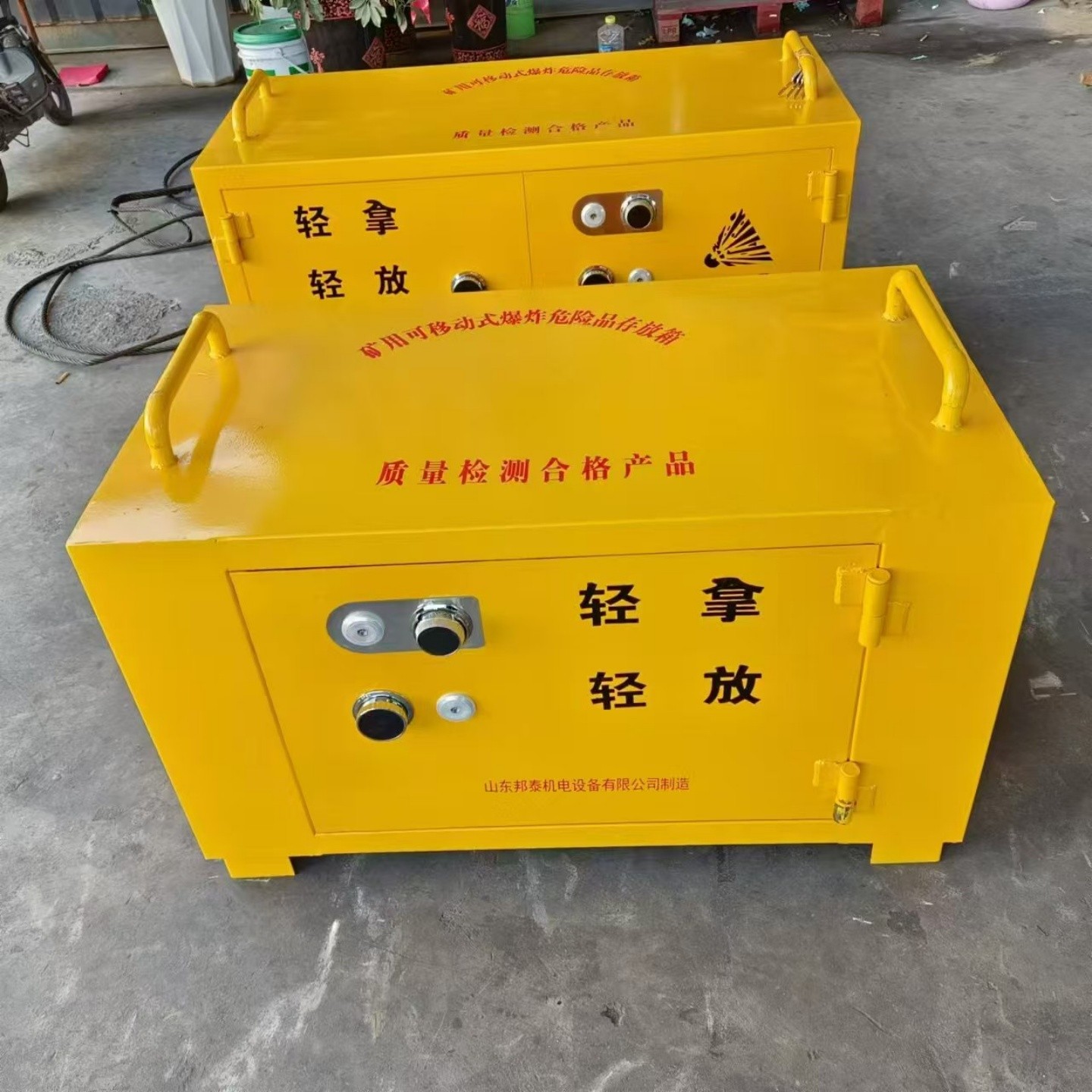 車廂部分:通常采用 6-8mm 厚的防爆鋼板制成,具有高強度和抗沖擊性能,能有效防止爆炸沖擊波和碎片的擴散。內部鋪設 10mm 厚的絕緣木板及 2mm 厚的防火防震防靜 電的阻燃墊,可起到緩沖、隔熱、防靜電的作用,確保爆破物品的安全存放。