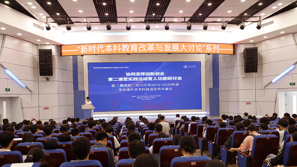 6月28日下午,“協同發揮創新創業第二課堂實踐活動育人功能”研討會暨“挑戰杯”四川大學2019—2020年度學生課外學術科技活動節開幕式在望江校區匯文演播廳舉行。副校長張林、學校有關部門負責人、各學院分管學生工作黨委副書記、教學副院長、團委書記及師生代表參加了本次研討會暨開幕式。