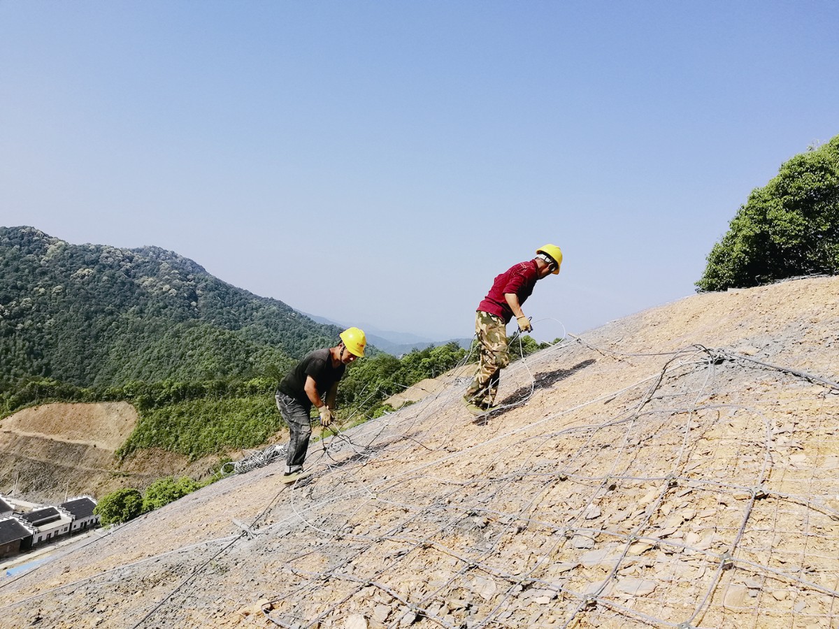 該院采用工程措施和生態恢復,保護邊坡不致因掉塊、崩塌失穩而危及安置房、行人車輛、小區市政設施安全。施工內容包括削方及修整、鋼筋錨桿、安裝防護網、噴射植被混凝土綠化坡面、筑擋土墻、施工(截)排水工程。圖為施工現場。 來源于:中國礦業報