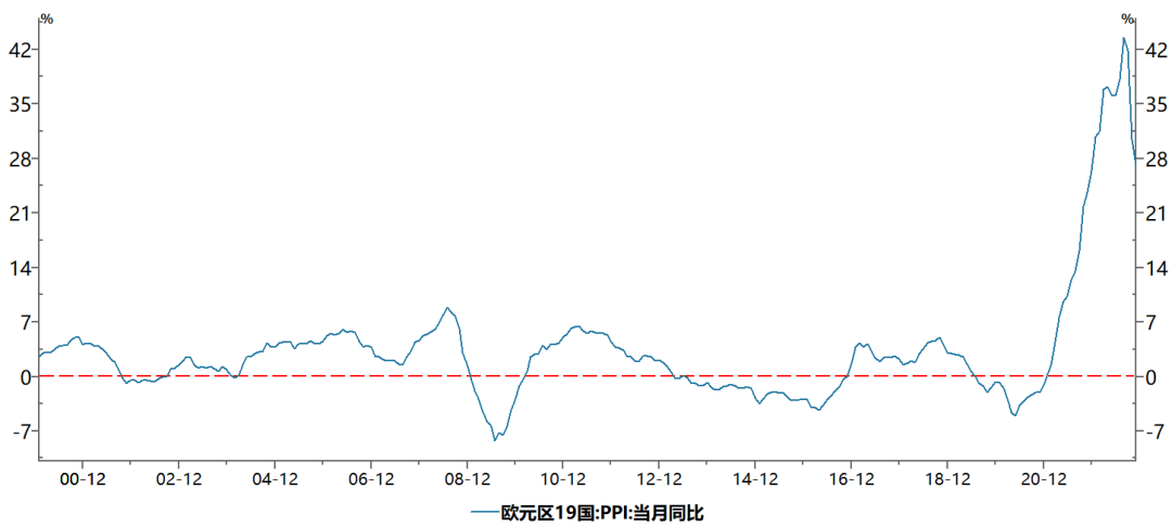 2022年2月俄烏沖突開始后,歐洲天然氣價格持續飆升,高企的能源成本使歐洲出現了史無前例的通脹,2022年8月歐洲PPI現歷史峰值,達到驚人的43.8%。歐元出現了大幅貶值,歐洲股市持續暴跌。隨著天然氣價格的下行,歐洲通脹逐步緩解。11月份PPI同比增幅已下行至27.1%,環比增幅持續為負增長。11月、12月,歐洲制造業PMI出現連續2個月反彈。市場對歐洲經濟衰退的擔心逐漸退去。