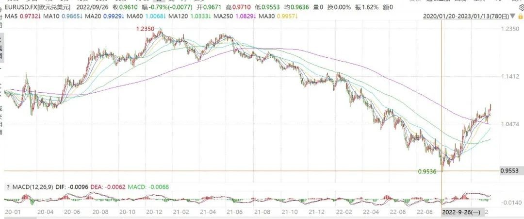 自2022年10月份以來,一些重要的觀察指標出現了趨勢性的變化,使得美元回調、歐美中股市回升、歐元人民幣升值、商品價格現見底回升的跡象。主要的驅動力分別來自于歐洲、美國和中國。