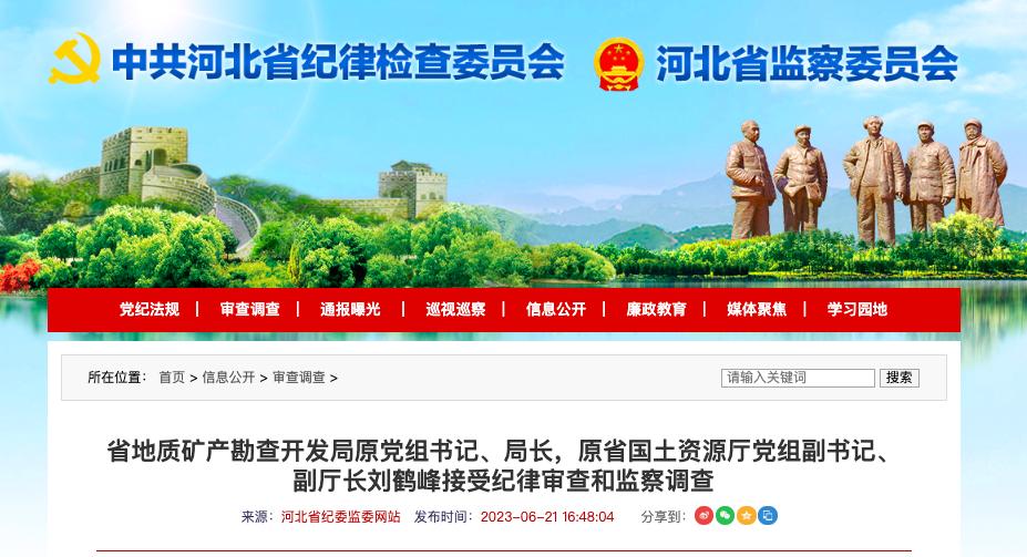 除賀喜和李健外,河北省地礦局還有兩名廳官在此之前已落馬。今年6月21日,河北省紀委監(jiān)委發(fā)布消息稱,省地礦局原黨組書記、局長,原省國土資源廳黨組副書記、副廳長劉鶴峰;省地礦局原黨組成員、總經(jīng)濟師郭榮麟涉嫌嚴重違紀違法,目前正接受省紀委監(jiān)委紀律審查和監(jiān)察調(diào)查。