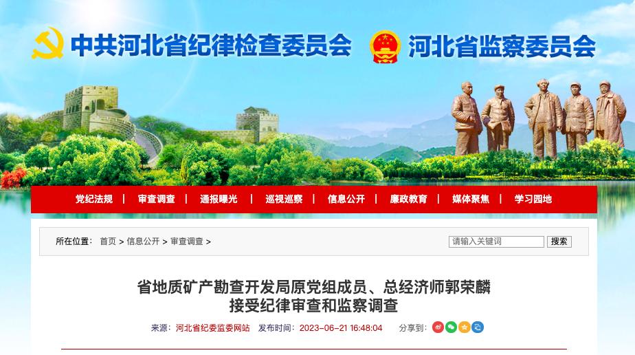 上述4名河北省地礦局落馬廳官被查時,除李健尚在職外,其他三人均已退休,其中,郭榮麟于2023年2月退休,賀喜于2021年6月退休,劉鶴峰于2018年11月退休。