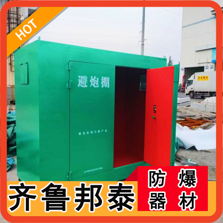 移動避炮棚,也叫爆破防護屋,是本公司采用1.0cm厚左右的冷軋鋼板焊接而成,內(nèi)部是10mm絕緣木板以及防靜電阻燃?xì)帧1芘谂飪蓚?cè)開有觀察窗口,窗口用防護網(wǎng)封住,能有效的避免蟲蟻進入。