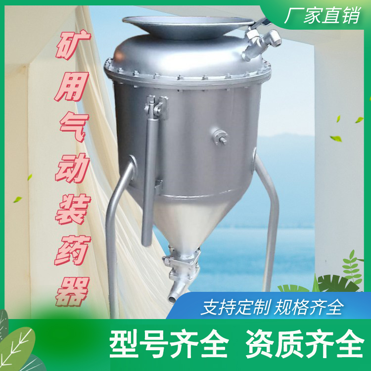 礦用裝藥器是地下礦山不可缺少的裝藥設(shè)備。采用風(fēng)力輸送,具有裝藥速度快、裝填密度大、裝藥效率高、爆破效果好、使用攜帶方便等特點(diǎn)。采用裝藥器裝藥,可節(jié)省人力、提高裝藥效率、改善爆破質(zhì)量、降低開采成本、減輕勞動(dòng)強(qiáng)度、保障作業(yè)安全。多年來,經(jīng)治金、煤礦、建材等井下礦山使用,深受廣大用戶歡迎。