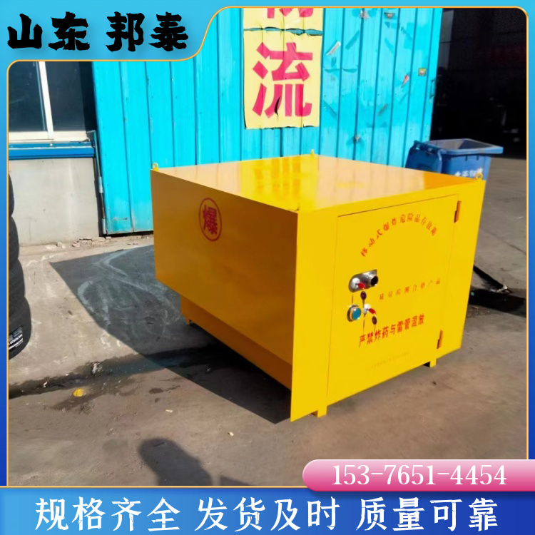 皮卡車炸藥箱門板為6-8mm厚防爆鋼板,內(nèi)襯為10mm厚絕緣木板,內(nèi)置2mm厚防靜電氈,一般為后開門,也可定制雙側(cè)雙開門。門鎖為雙鑰匙鎖加機械密碼鎖,雙人雙鎖且實現(xiàn)雙鎖聯(lián)動機制,符合國家爆炸危險品防盜要求。移動式危險品存放柜集儲存、運輸于一體,具有防爆、防盜、防火阻燃、防靜電等特點,是戶外爆破作業(yè)理想的運輸工具。