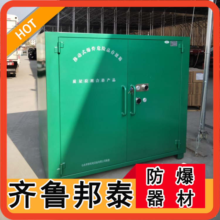 移動式爆炸危險存放箱依照其功能作用是對火工品等爆炸物品的存儲,其外層為6-8mm淬火加工冷軋鋼板,內層附由10mm絕緣木板以及2mm防靜電阻燃氈,同時根據相關部門的防盜要求,成功實現雙鎖聯動功能。