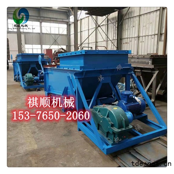 K型給料機由機架、底板(給料槽)、傳動平臺、漏斗、閘門、托輥組成,當電機開動后經彈性聯軸器,減速機、曲柄連桿機構拖動傾斜5度的底板,在輥上作直線往復運動,把煤或其它磨琢性小,粘性不大的松散粒狀,粉狀物料從給料設備中均勻地卸到受料設備中