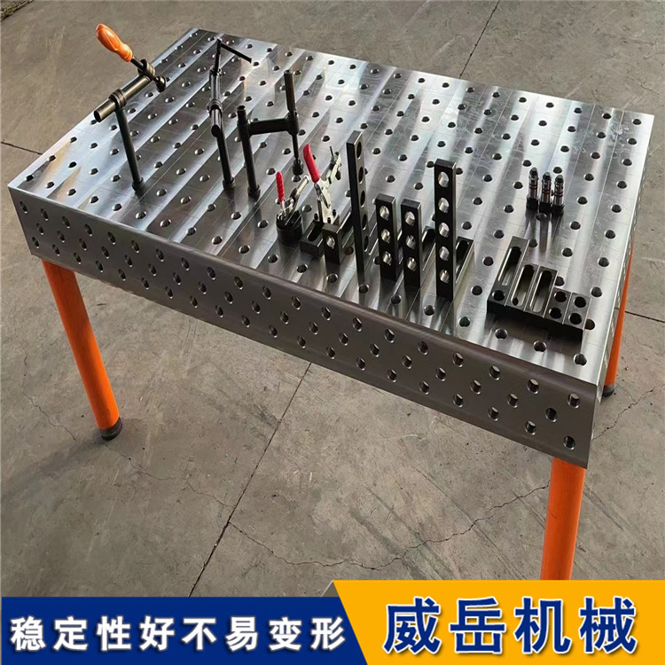 三維柔性焊接平臺面采用帶孔格板形式,孔徑有D28和D16兩個系列。在高精度的臺面上,每隔100mm均布D28的圓孔或每隔50mm均布D16的圓孔,這些孔可用于拼接各種功能的定位模塊和夾具。各種功能模塊除臺面外,還有定位塊,直角塊,立柱,任意角度調(diào)整,V形塊,銷栓,各類快速夾具,間隙調(diào)整片及各種輔助模塊。模塊的設(shè)計構(gòu)思巧妙,可以進行各種組合和反復(fù)應(yīng)用。