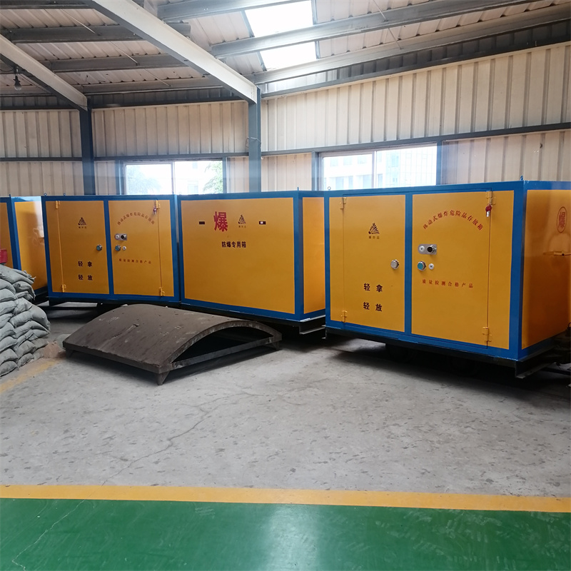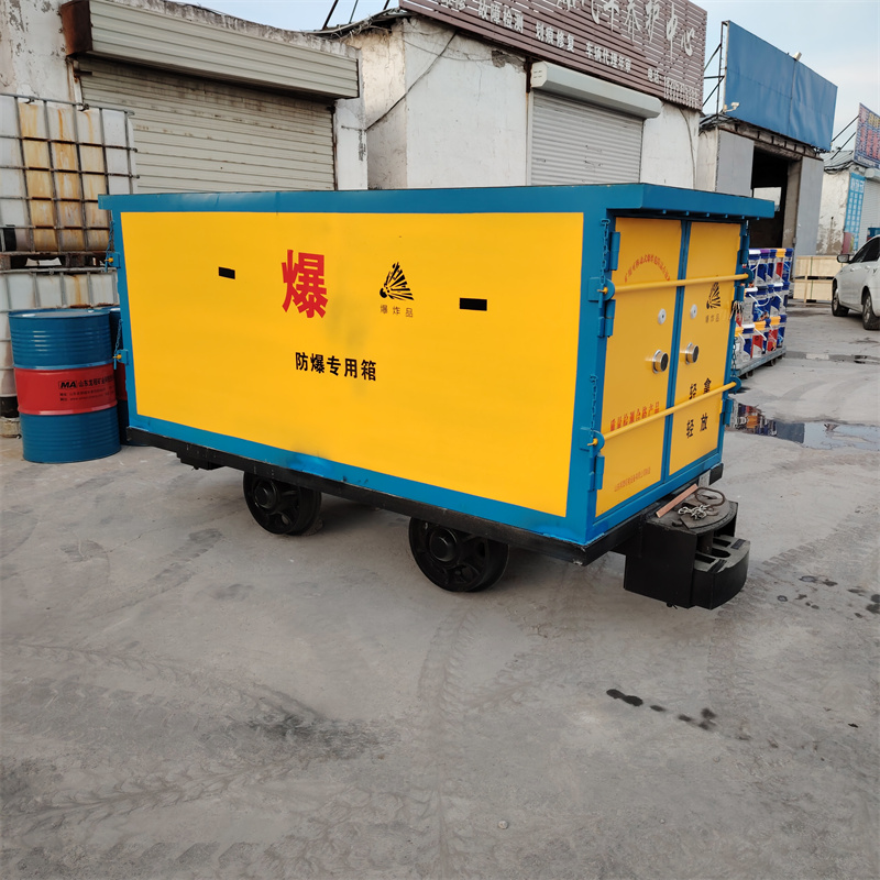 煤礦井下軌道運輸車是礦用可移動式爆炸危險品存放箱和礦用材料車兩部分焊接而成,主要功能是用于運輸炸藥、雷管等爆炸物品,適用于煤礦、非煤礦山的井上井下。這種有軌炸藥車與無軌炸藥車不同,它是沿著礦山軌道來運輸爆炸物品。