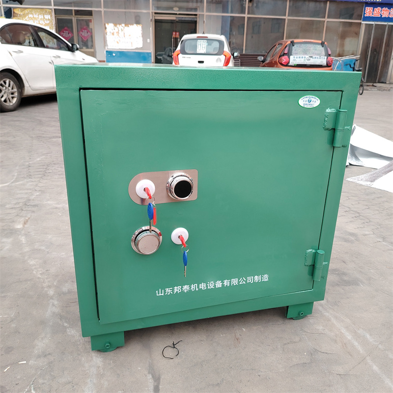 移動式爆炸危險品存放箱,也叫爆炸物品存放柜、火工品存放柜、炸藥臨時保管箱、雷管防爆箱。體外置6.0mm~8.0mm厚防爆鋼板,內(nèi)置10.0mm絕緣木板,底部鋪設(shè)有2.0mm防靜電膠墊,四周鋪設(shè)有抗震阻燃氈。鎖具采用的是GA機械鎖具兩把,以及一把機械轉(zhuǎn)盤密碼鎖箱,爆破員和安全保管員分開保管鑰匙,同時使用打開領(lǐng)取火工品。