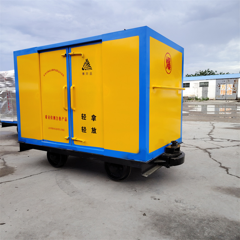 煤礦井下軌道運輸車是礦用可移動式爆炸危險品存放箱和礦用材料車兩部分焊接而成,主要功能是用于運輸炸藥、雷管等爆炸物品,適用于煤礦、非煤礦山的井上井下。這種有軌炸藥車與無軌炸藥車不同,它是沿著礦山軌道來運輸爆炸物品。