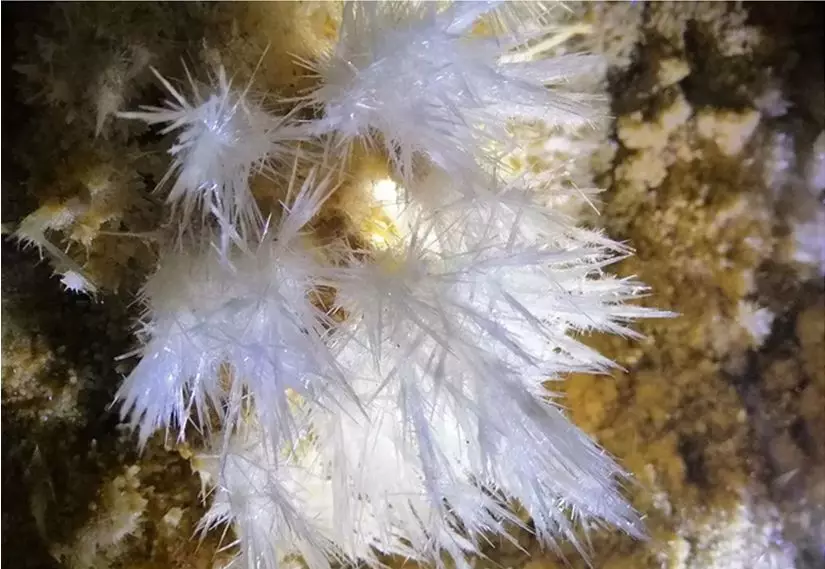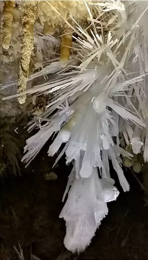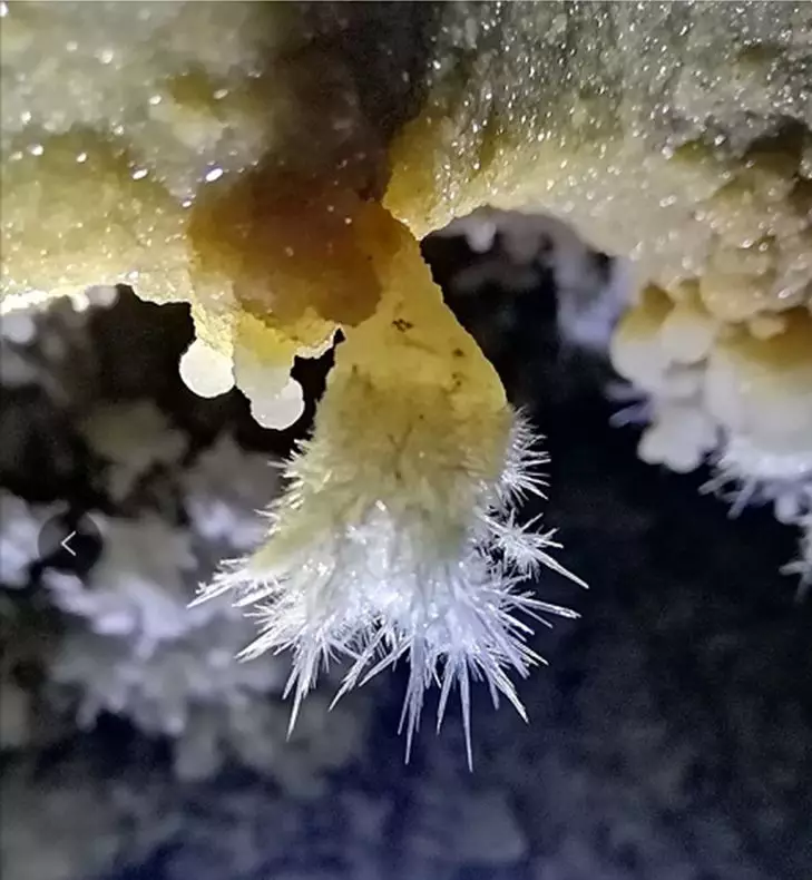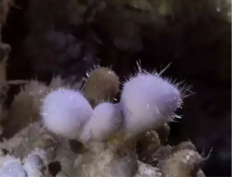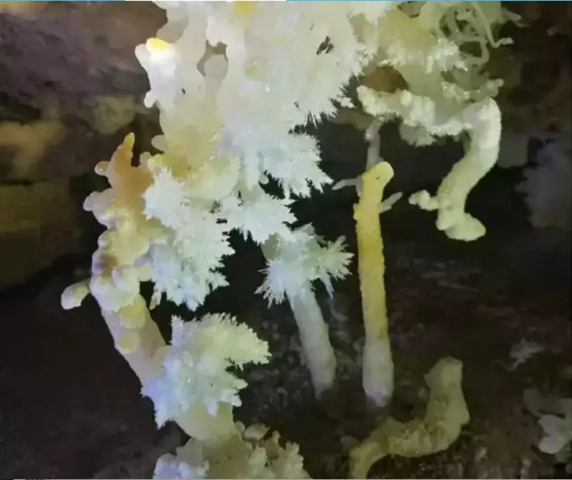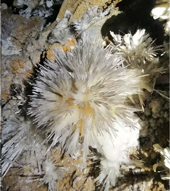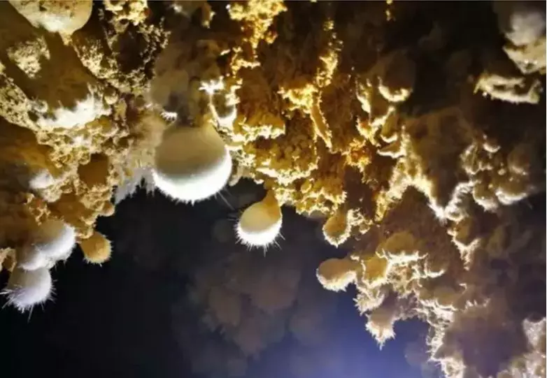 文石貌似絨絨球,鵝管蜿蜒細細圈;