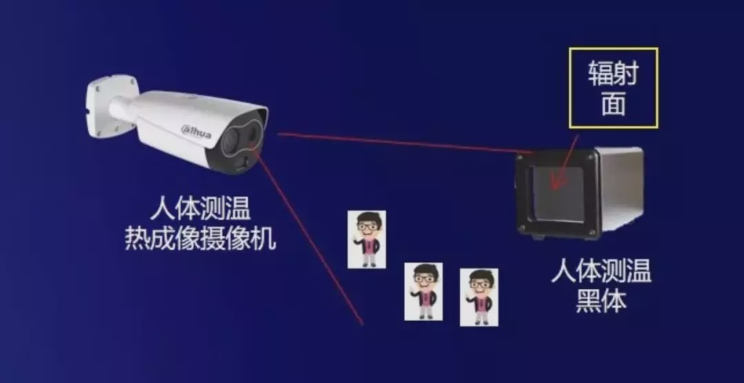 為了實現精確測量,熱成像人體測溫系統可以以黑體作為測溫的基準溫度源。黑體安裝在攝像機的視野里,后者對黑體進行溫度測量,并以此為基準實時進行測溫校正,以達到人體測溫高精度±0.3℃的要求。