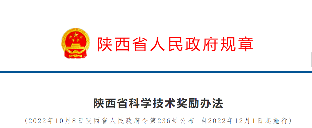 文章來源于:陜西省人民政府,原文鏈接:陜西省科學(xué)技術(shù)獎(jiǎng)勵(lì)辦法