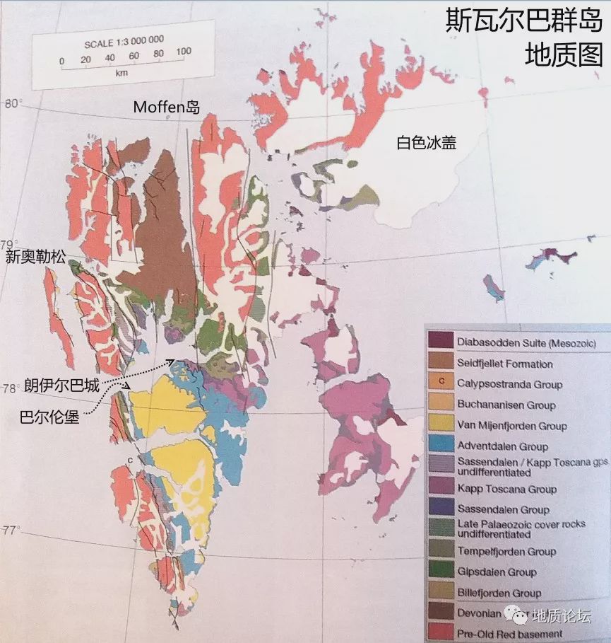 在斯瓦爾巴群島的西北海岸線上所看到的巖石可以進(jìn)一步地與這里的