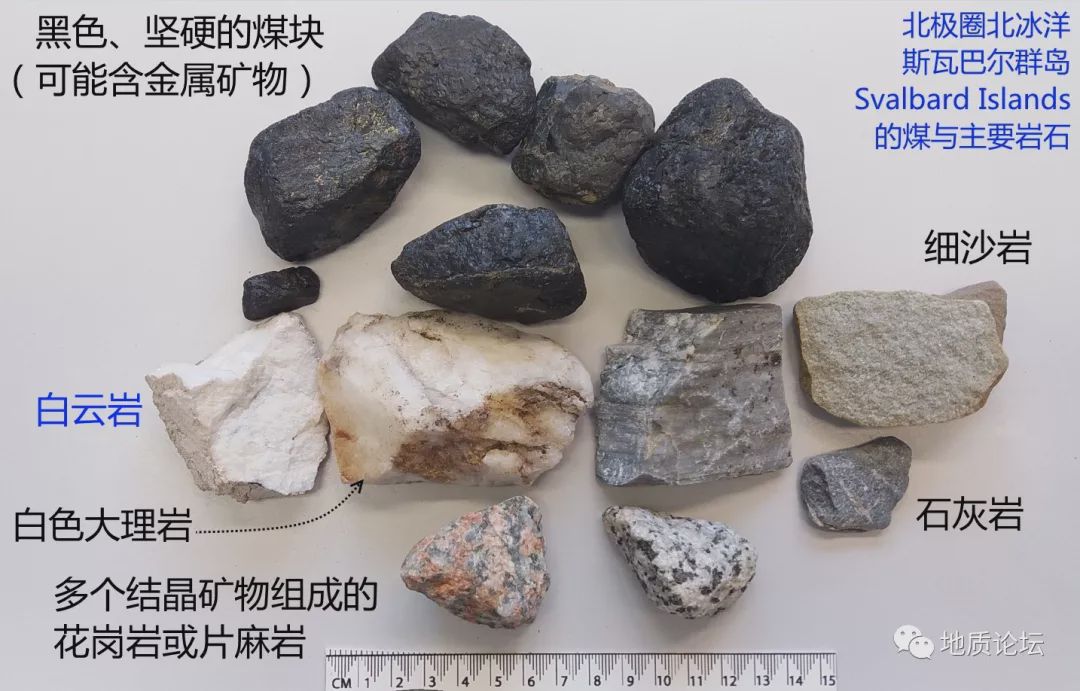 地質(zhì)考察,我體會(huì)和理解了,這里是大陸地殼的一個(gè)組成部分。在這篇博文中,我將先介紹這里的巖石。再介紹這里的煤碳開采。之后,再介紹這里的煤碳開采的瓦斯爆炸事件。主要是用我在現(xiàn)場(chǎng)的照片來(lái)做這些介紹。如下圖所示,沉積巖(砂巖、粉砂巖、泥巖)在朗伊爾城和巴爾倫堡大量見到。石灰?guī)r、白云巖和大理巖在中部的新奧勒松大量見到。變質(zhì)巖(片麻巖)和火成巖在北部的Nordvest-Spitsbergen 國(guó)家野外公園大量見到。