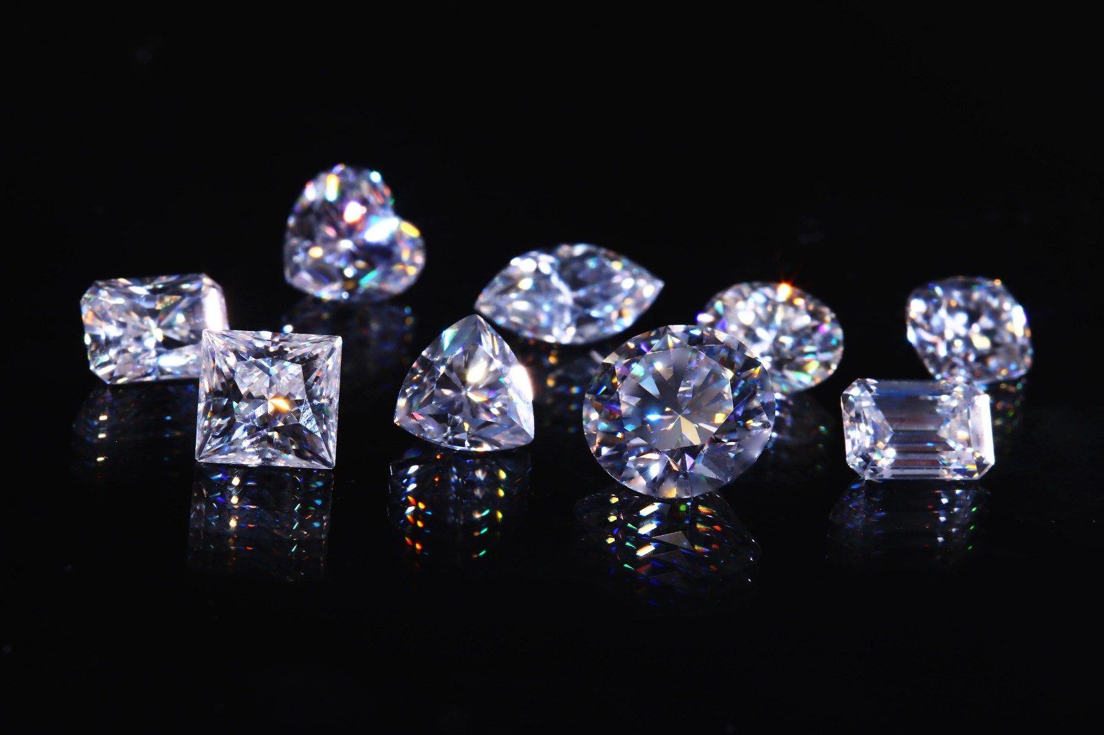 雖然外貌足以以假亂真,但鑒別莫桑石的方法也不少。最簡單也最直觀的就是在10倍放大鏡下觀察,莫桑石有刻面棱重影現(xiàn)象和強(qiáng)火彩特征。除此之外,它的相對密度值較低,雙折射率和色散較高,內(nèi)部還可能存在長針狀包裹體,這些也是莫桑石與天然鉆石的不同之處。