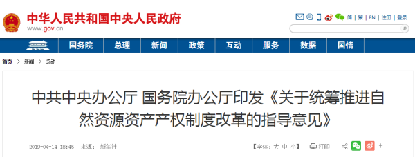 《關于統籌推進自然資源資產產權制度改革的指導意見》全文如下。