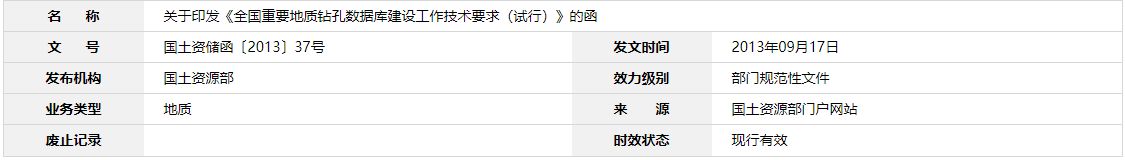 關于印發《全國重要地質鉆孔數據庫建設工作技術要求(試行)》的函