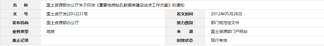 《重要地質鉆孔數據庫建設試點工作方案》的通知